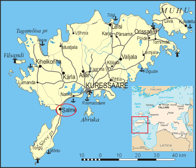 Viron suurimman saaren Saarenmaan Salmessa kaivettiin syksyllä 2008 valokaapeliojaa, kun esiin tuli ihmisluita ja rautaisia esineitä. Koska lähistöllä sijaitsevassa Tehumardissa oli vuonna 1944 käyty yksi suurimmista Viron maaperällä koskaan käydyistä taisteluista, luultiin ihmisjäännöksiä aluksi II maailmansodan aikaisiksi, ja rautaista esinettä kiväärin pistimeksi. Kun esine lopulta tunnistettiin keihäänkärjeksi, rakennustyöt keskeytettiin ja paikan arkeologinen tutkimus saattoi alkaa.