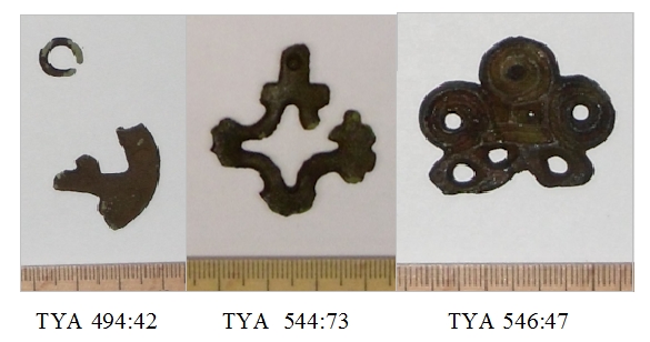 Häräsilmäleimakoristeisen riipuksen katkelman kaltaisia riipuksia on löydetty Suomesta aikaisemmin vain yksi Kalannin Lehtimäestä. Ristinmuotoiselle riipukselle on vastaavuus liiviläisissä löydöissä ja spiraalikoristein riipus muistuttaa koristeaiheiltaan permiläisen alueen koristeluita. Riipuksen ajoitus on viikinkiaika tai sitä edeltävät ajanjaksot.