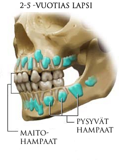 - Vanha lapsi (6-12 vuotta): jaksoa kuvaa rautahampaiden puhkeaminen; iänmäärityksessä paras seurata maitohampaiden ja rautahampaiden kehittymistä;