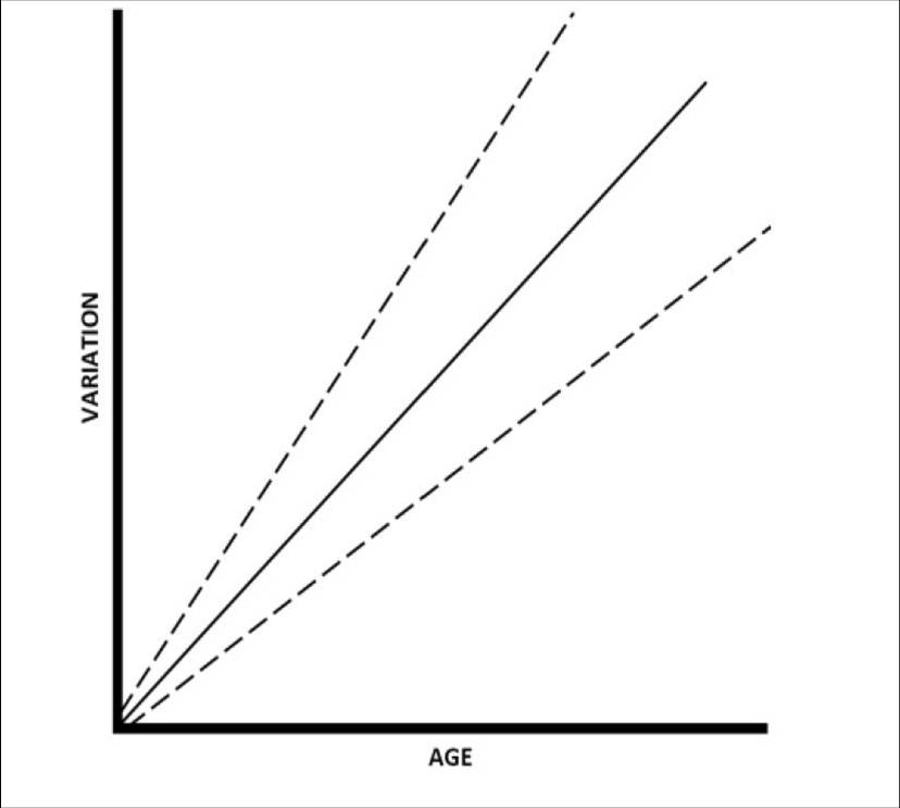 Aikuisten ”kulumismuutosten” aikataulut ovat vaihtelevampia yksilöiden välillä kuin lasten kasvun ja kehityksen aikataulut. Tästä syystä aikuisten luuston perusteella määritetyllä todennäköisellä kuoliniällä on suurempi vaihteluväli kuin mitä lapsen luurangolle voidaan parhaassa tapauksessa arvioida; myös aikuisen ikäarvio on epäluotettavampi menetelmien rajoituksista johtuen. Mitä nuoremmasta yksilöstä on kyse, sitä tarkempirajainen iänmääritys saadaan; vastaavasti vanhemmille yksilöille iänmääritys on epätarkempi. Tämä trajectory effect –nimellä tunnettu ilmiö (Nawrocki 2010:88-89) johtuu siitä, että nuorempana fyysinen kehitys tapahtuu nopeasti, mutta hidastuu iän myötä. Esimerkiksi hampaiden kehityksessä: mitä myöhemmin hammas keskimäärin puhkeaa, sitä suurempi keskihajonta puhkeamisiässä on (Schaefer et al. 2009).