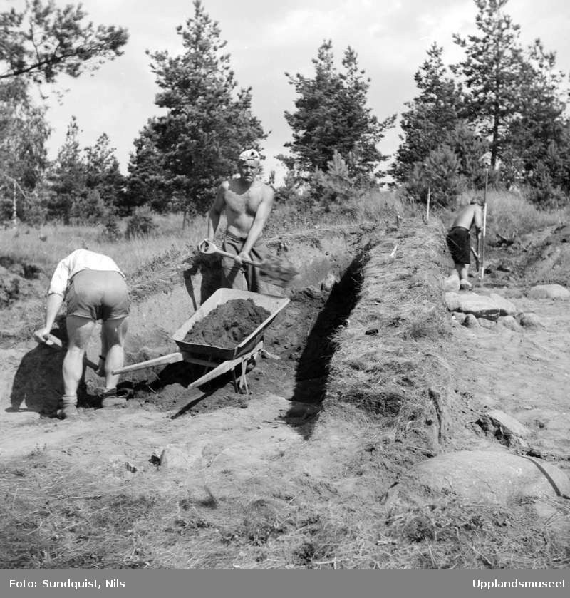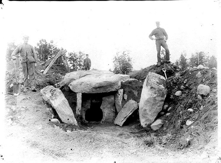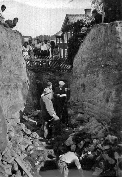 Hautakumpua kaivetaan Gamla Uppsalassa 1874. Kummun esinelöydöt sisälsivät mm. luukampoja, merkkejä karhuntaljasta, lasipikarien paloja ja 500-600-luvulle ajoittuvien kullattujen solkien kappaleita. Lisäksi löydettiin luita, joiden kaivajat arvelivat kuuluneen ainakin yhdelle miehelle ja naiselle. Vuonna 1999 tehdyssä luuanalyysissä pystyttiin kuitenkin tunnistamaan vain yksi aikuinen yksilö, jonka sukupuolta ei voitu määrittää. Kuva: H. Osti/RAÄ.Poikia rautakautisella kalmistolla Uplannin Edsbrossa 1899. Kuvan ottanut Bernhard Salin ei voinut kuvanottohetkellä tietää saavansa kaivauksesta aineistoa tutkimukseen, josta hänet tunnettaisiin kansainvälisesti vielä yli sadan vuoden kuluttua. Vuonna 1904 Salin julkaisi kansainvaellus- ja vendelaikaisen (400-800 jaa) eläinornamentiikan tyylijaottelun, johon tutkimuksissa edelleen viitataan Salinin tyyppeinä. Salinin koristelutyylejä on käytetty etenkin metallisissa koruissa, napeissa ja aseiden kahvoissa. (Salinin ornamentiikkaa mm. Kirmukarmun miekan ponnessa, josta artikkelissa Miekan ponnesta Kalevala Koruksi.)Pikkutyttö poseeraa Smörkullenin roomalaisaikaisen kalmiston kaivauksella 1909. Itä-Götanmaan Smörkullenista kaivettiin 1900-luvun alussa satoja roomalaiselle rautakaudelle (150 eaa–260 jaa) ajoittuvia ruumis- ja polttohautauksia. Aineisto on mahdollistanut lukuisia myöhempiä tutkimuksia. Nils Gejvall käytti 1991 kandidaatintyössään Smörkullenin palanutta luumateriaalia osoittaessaan, että palamattomien luiden analysoinnissa käytetyt menetelmät eivät sovellu ongelmitta palaneen luuaineiston tutkimukseen. Carola Liebe-Harkort (2010) on sittemmin tutkinut kalmiston luulöytöjen avulla roomalaisaikaisen Smörkullenin väestön määrää, terveydentilaa ja rakennetta. Kalmistosta on löytynyt myös useita trepanoituja kalloja, joista Oscar Funegård Viberg on kirjoittanut opinnäytetyön Tukholman yliopistoon vuonna 2012. Kuva: Otto Frödin/RAÄ.Kaivajia neoliittisen kivikauden ja pronssikauden vaihteen megaliittihaudalla Skogsbossa vuonna 1913. Haudasta löydettiin vainajien jäännösten lisäksi mm. keramiikkaa, nuolenkärkiä ja pronssinen rannerengas. Kuvan on ottanut kaivauksia johtanut Sune Lindqvist, joka sittemmin toimi Uppsalan yliopiston arkeologian professorina 1927-52. Lindqvist tuli tunnetuksi etenkin keskisen rautakauden tutkijana ja kenttätöiden modernien tutkimusmenetelmien pioneerina.Arkeologeja Malmön vanhassa kaupungissa 1913. Kuvan luurangot saattavat liittyä 1600-luvun tanskalaissotien joukkohautoihin. Kuva: RAÄ.Gödåkerin hautaa G kaivetaan Uppsalan Tenstassa vuonna 1915. Roomalaiselle rautakaudelle (100-400 jaa) ajoittuva kalmisto koostuu 26 rakenteesta, joista 14 on kuvassa taustalla näkyvien kaltaisia pyöreitä kivilatomuksia. Kalmiston löydöt sisältävät mm. kultaisia sormuksia ja roomalaisia tuontiesineitä, kuten viinikauhan ja ns. hemmoorin, joka on munakupin muotoinen pronssiastia. Kuva: E. Olsson/RAÄKaivaja on puhdistanut esiin kivilatomuksen Pohjois-Tukholmassa sijaitsevassa Lilla Frescatin viikinkiaikaisessa (800-1000 jaa) kalmistossa huhtikuussa 1915. Maatalouden merkityksestä kalmistoa käyttäneelle väestölle kertoo eräästä haudasta löytynyt rautainen miniatyyriaura. Kuva: Bror Schnittger/RAÄ.Arkeologeja matkalla kaivaukselle Upplannin Sollentunassa 1928. Kyseisenä kesänä paikkakunnalla tutkittiin Turebergin vendelaikaista hautakumpua. Kaivauksia johti Berit Wallenberg, joka oli Ruotsin ensimmäisiä merkittäviä naisarkeologeja. Vuonna 1955 Wallenberg perusti rahaston, josta jaetaan vuosittain avustuksia ruotsalaisen arkeologian tutkimukseen. Kuva: RAÄ.Laivahautaa tutkitaan Uplannin Tuna i Alsikessa 1928. Kalmistosta on löydetty kymmenkunta viikinkiaikaista hautaa, joissa nainen tai mies on haudattu polttamattomana veneeseen runsaiden hauta-antimien kera. Kuva: Berit Wallenberg/RAÄ. (Laivahautauksista Kalmistopiirissä.)Arkeologit Poul Nørlund ja Elias Dahl tutkivat Visbyn keskiaikaista joukkohautaa vuonna 1929. Visbyn kaupunginmuurin ulkopuolella sijaitsee useita joukkohautoja, joihin on laskettu vuonna 1361 tanskalaisten piirityksessä surmansa saaneiden soturien jäännökset. Kuva: N. Åzelius/RAÄ. (Lue lisää Visbyn luulöydöistä: Väkivallan jälkien tutkimuksesta arkeologisissa luuaineistoissa.)Ruotsalaisarkeologien tutkimusmatkat ulottuivat toisinaan kauas. Kuvassa Ture Arne Pohjois-Iranissa Shah Tepen ekspeditiolla 1933. Arne tutki Itä-Aasian, Lähi-Idän ja Euroopan kontakteja, ja kaivoi Shah Tepessä satoja hautauksia, joista osa ajoittuu pronssikauteen (3200-1800 eaa), osa islamilaiselle periodille (800-1000 jaa). Ruotsissa oli keskusteltu paljon skandinaavisten pronssikautisten esineiden yhtäläisyyksistä iranilaisiin esineisiin, joten Arne toi Ruotsiin kokoelman luristanilaisia pronssiesineitä, joiden avulla hän teki vertailevaa pronssikauden tutkimusta. Kuva: B. Dubenskij.Radiolähetys käynnissä Kungshögenin rautakautisen hautakummun kaivauksilla Hudiksvallissa 1934. Kaivetun kummun profiilit kohoavat henkilöiden molemmin puolin. Nykyisin kaivauksista tiedotetaan entistä enemmän sosiaalisessa mediassa, mutta 1930-luvulla radio edusti moderneinta tiedonvälitystä. Vuonna 1934 radiolähetykset olivat pyörineet Ruotsissa vasta muutaman vuoden, ja edellisvuonna lähetysten määrää oli lisätty kahdeksaan tuntiin päivässä.Keskiaikaisen Pyhän Ingridin nunnaluostarin kaivauksessa 1939 löytyneitä kalloja on nostettu riviin laudan päälle. Kuva: Berit Wallenberg/RAÄ.Greta Arwidsson käyttää kameraa dokumentointivälineenä Högåsenin kaivauksella Gamla Uppsalassa 1944. Tutkittavana oli kuusi nuoremmalle rautakaudelle ajoittuvaa hautakumpua. Arwidsson oli Ruotsin ensimmäinen naispuolinen arkeologian professori. Hän toimi Tukholman yliopistossa 1956–1973. Kuva: Nils Sundquist/RAÄ.Toinen kuva samaiselta Högåsenin kaivaukselta 1944. Hautakumpua kaivetaan sektoreissa ilmeisen lämpimässä 