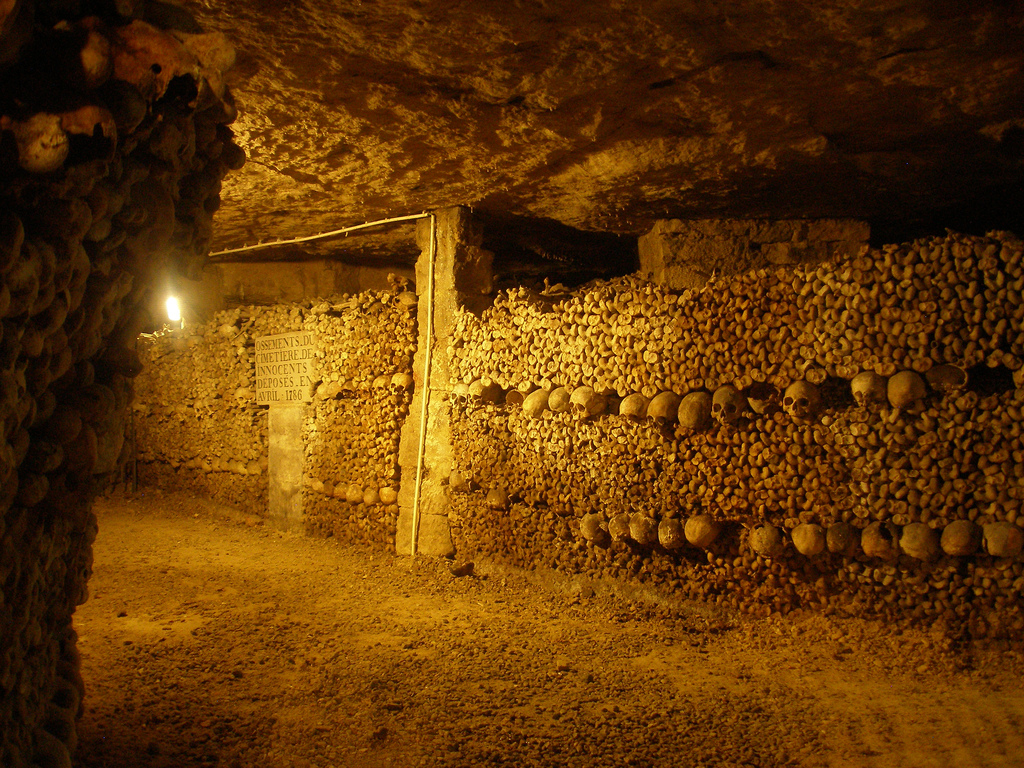 Sekulaarien ossuaarien esikuvana on pidetty Pariisin katakombeja. Pariisin katakombit on Rooman katakombien mukaan nimetty ossuaario, jonka täyttäminen aloitettiin 1700-luvun lopussa Les Innocentsin hautausmaan luilla. Les Innocents oli ollut käytössä jo ennen 1000-lukua, ja täyttymisen vuoksi se alkoi olla epähygieeninen paikka. Useiden valitusten jälkeen valtioneuvosto kielsi hautausmaan käytön marraskuussa 1785 ja määräsi sen tyhjennettäväksi. Luiden säilytyspaikaksi valikoitui kaupungin läheisyydessä sijaitseva hylätty, maanalainen kivilouhos. Usean vuoden ajan luita siirrettiin yöaikaan kulkueissa, joihin liittyi kirkollisia seremonioita. Les Innocentsin lisäksi katakombeihin kuljetettiin Pariisin muiltakin hautausmailta yhteensä miljoonien yksilöiden luita. Katakombit herättivät uteliaisuutta, ja jo ensimmäisten vuosien aikana kuninkaalliset ja hoviväki kävivät tutustumassa paikkaan. Romantiikan aikakauden tunteita ja mielikuvitusta korostanut ilmapiiri vahvisti ihmisten kiinnostusta suuriin luukokoelmiin, ja niin Pariisin katakombit avattiin yleisölle vuonna 1874. Sekulaareja ossuaarioita on tehty myöhemmin myös taistelujen jälkeen, esimerkiksi Douamontiin Verdunin taistelun jälkeen 1916.