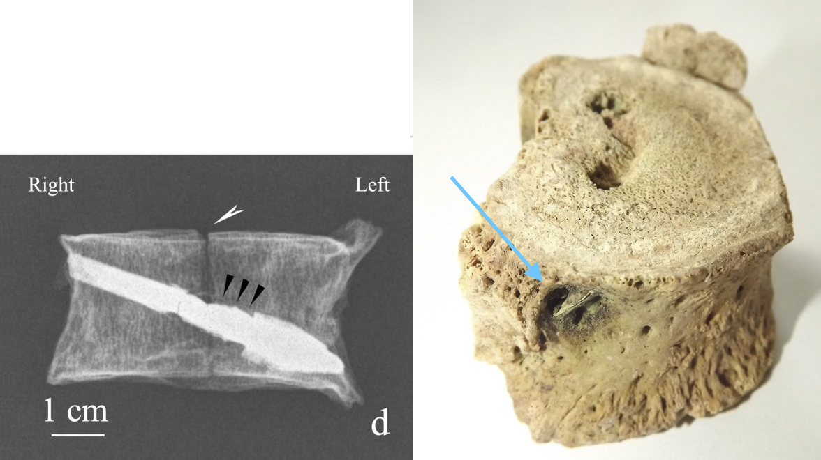 Tur, S.S., Svyatko, S.V., Beisenov, A.Z. & Tishkin, A.A. 2015. An Exceptional Case of Healed Vertebral Wound with Trapped Bronze Arrowhead: Analysis of a 7th – 6th c. BC Individual from Central Kazakhstan. International Journal of Osteoarchaeology. DOI: 10.1002/oa.2470