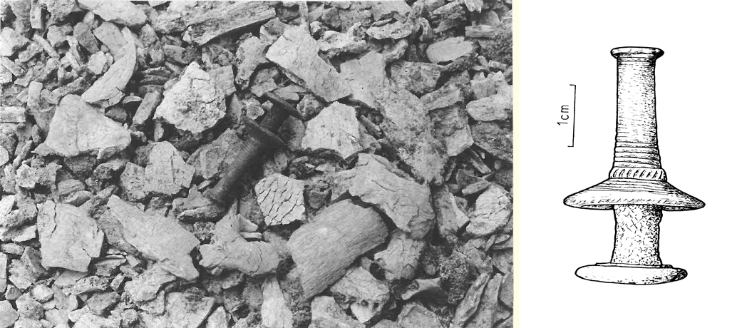 Vuoden 1947 kaivauksissa Rosén tutki yhteensä viisi pyöreätä röykkiötä, kolme laivalatomusta ja yhden suorakaiteen muotoisen kivilatomuksen. Osa rakenteista oli jo tuolloin tuhoutuneita, ja yleisesti ottaen löytöaineisto jäikin vähäiseksi koostuen ainoastaan muutamasta palaneesta luunpalasta. Joukossa oli mm. ihmisen sormiluita, joten kivirakenteet tulkittiin haudoiksi. Myös yhdestä laivalatomukseksi tulkitusta rakenteesta löytyi polttohautaukseen viittaava kappale palanutta ihmisluuta.