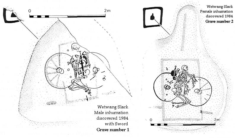 Miehen ja naisen vaunuhautaus. Wetwang Slack, Englanti. Kuvat: Dent 1985.