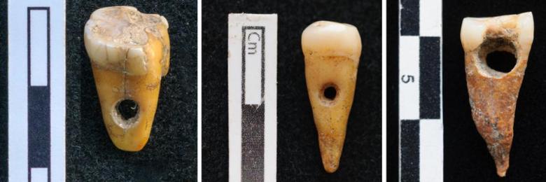 Ihmishammasriipuksia on löytynyt yhteensä kolme, ja ne ajoittuvat noin vuoden 6500 eaa. tienoille. Hampaiden juuriin on porattu reikä ja käyttöjälkien perusteella niitä on kannettu riipuksina tai amuletteina pitkään.