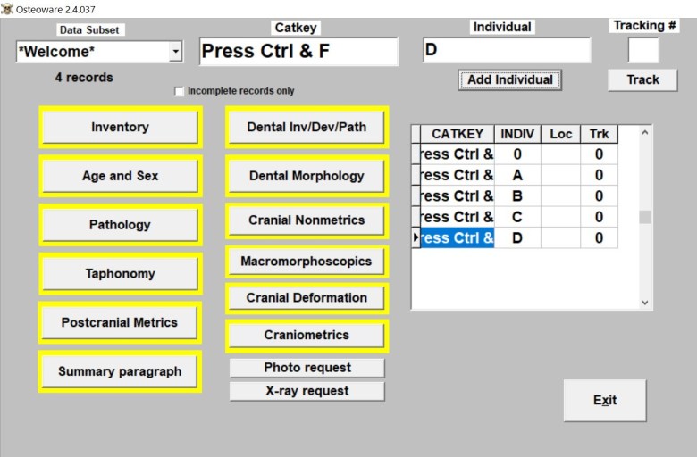 Biologisen profiilin määrityksessä käytettävien ohjelmien lisäksi osteologisen analyysin tukena voi olla muunlaisiakin ohjelmia. Ne voivat liittyä luuaineiston dokumentaatioon yleisellä tasolla tai niiden järjestämiseen. Forensisen tutkimuksen puolelle on kehitetty myös ohjelmia, joita voidaan käyttää isotooppitutkimuksessa tai kasvojen tunnistamisessa (katso lisää esimerkkejä Lynch & Stephan 2018). Tässä jutussa nostetaan esille alkuperäohjelmien lisäksi kaksi muuta ohjelmaa, joita käytetään dokumentoinnissa ja sekoittuneiden luuaineistojen järjestämisessä.