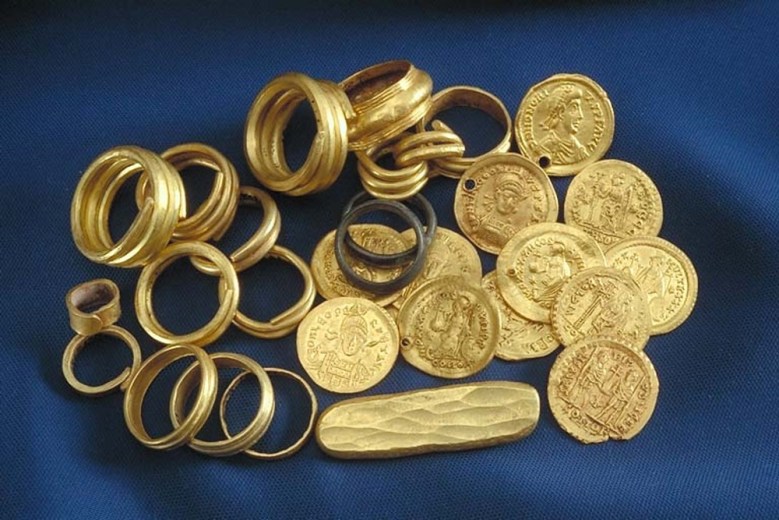 Roomalais- ja kansainvaellusaikaiset Öölannin rikkaudet olivat suurelta osin peräisin Rooman valtakunnan rajaseuduilta (Hollmring 201: 45). Öölannista tunnetaankin eniten roomalaisia solidus-kultarahoja koko Skandinavian alueella. Öölantilaiset rahalöydöt sisältävät vain vähän rahoja, mutta niitä on useita. Rahalöydöt ajoittuvat ajanjaksolle 300–600 jaa., ja ne sijoittuvat varsin usein rakennusten – tyypillisesti suurtilojen – jäänteiden sisälle (Karlsson 2007: 7-8). Rooman valtakunnan kaatumisen jälkeen, 470-luvulla, roomalaisten rahojen virta Öölantiin hiljeni. Tämän on ajateltu johtaneen saaren hiljakseen tapahtuneeseen köyhtymiseen (Holmring 2015: 45).