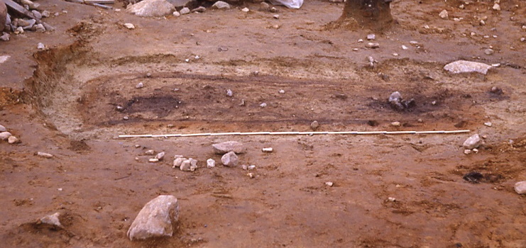 Kalmistossa ei ollut havaittavissa selviä rakenteita, kiveyksen tiheys vaihteli, samoin palaneen luun määrä. Mäen alalaidassa tutkittiin muutama ruumishauta, joista osa oli täysin löydöttömiä. Kahdessa haudassa oli selvästi havaittavissa arkun tai kehikon reunat – tosin vain värjäytyminä maassa. Mieltäni jäi askarruttamaan se alue, jossa oli vahva kulttuurikerros ja paikoin runsaasti saviastianpaloja, mutta ei mitään suoranaisesti kalmistoon viittaavaa.