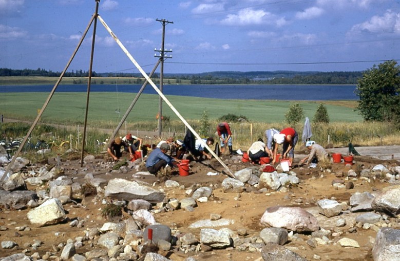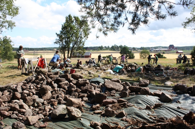 Öölannissa olin Ebba-Stina Königssonin kaivauksilla Stora Alvaretilla. Kaivoimme kivikkoisella tasangolla rakennuksenpohjia ja yritimme erottaa seinien paikkoja kivirivien perusteella. Maakerros oli ohut eikä löytöjä tullut juuri lainkaan. Varsin nopeasti oppi siihen, että ei laskenut tyhjää ämpäriä maahan, vaan laittoi kiven pohjalle. Muuten tuuli vei sen mennessään ja sai juosta pitkän matkan hakemaan. Siellähän ei ole puustoa suojaamassa tuulelta.