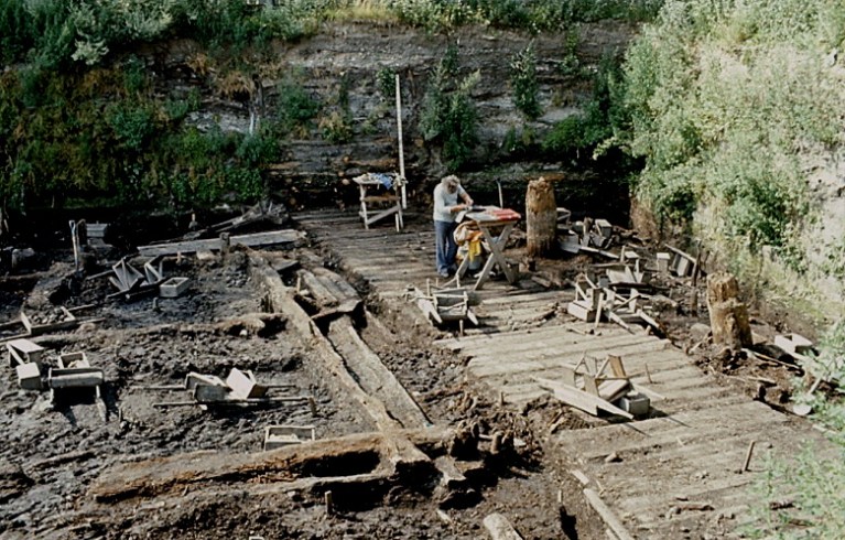 Novgorod sateen jälkeen: kaivausalue monta metriä maanpinnan alapuolella, sen reunoja kiertävät ojat ovat täynnä vettä, vaikka pumppu käy koko ajan, profiilileikkauksessa näkyy kerros toisensa jälkeen kadun päällispuita. Kuraista maata, puunsilppua, saviastianpaloja, nahkajätettä, kippuraisia tuohia – ja kaikki käydään läpi, dokumentoidaan ja tilastoidaan. Onnekkaammat löytävät metalliesineitä ja sorvattuja puuastioita tai jopa kirjoitusta tuohirullasta. Kaivauksella on valtava koneisto, jossa on selkeä hierarkia ja työnjako, monenlaista erityisosaamista ja tavallisia koululaisia. Parhaimmillaan kadut ja talot erottuvat selvästi, kerros kerroksen jälkeen, vuosisadasta toiseen. Meni muutama päivä, että aloin ymmärtää kokonaisuutta, kun venäjän taitoni ei ollut kovin vahva, mutta silti parempi kuin silloisten neuvostoarkeologien saksan tai englannin taito. Ajatus kadusta, joka painuu soiseen maaperään, mutta päällystetään aina uudelleen, teki minuun lähtemättömän vaikutuksen.