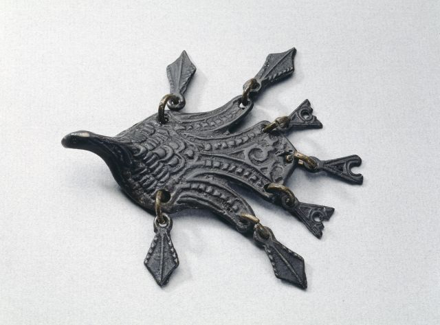 Niin sanotut permalaiset esineet kertovat rautakautisista kontakteista Volgan ja Kaman alueelle. Kuvassa Uhtuan linturiipus (Museovirasto/Finna.fi CC BY 4.0).