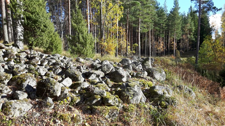 Sääksmäen linnavuorella Rapolassa muureista on jäljellä vaikuttavat kiviperustukset. Kuva: Ilari Aalto.