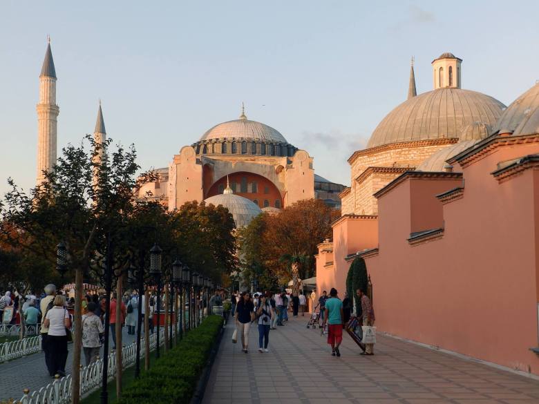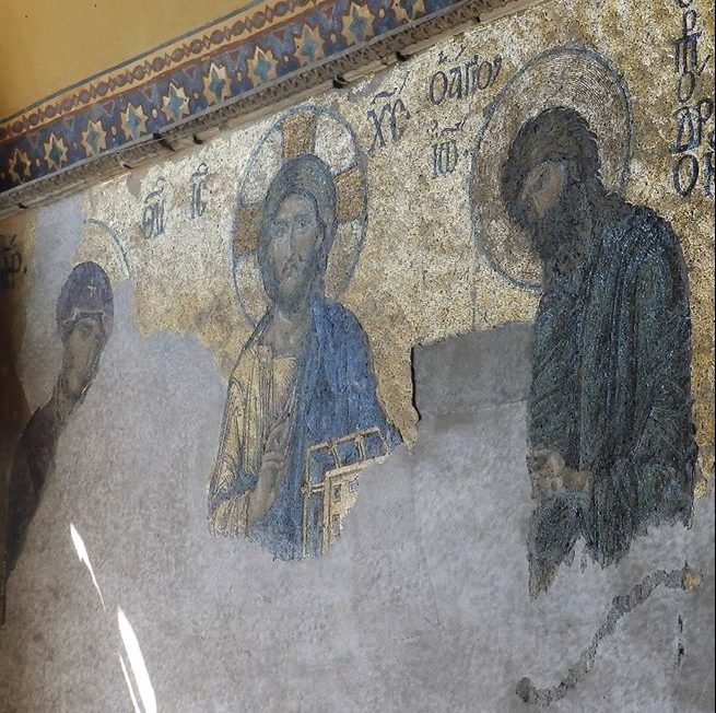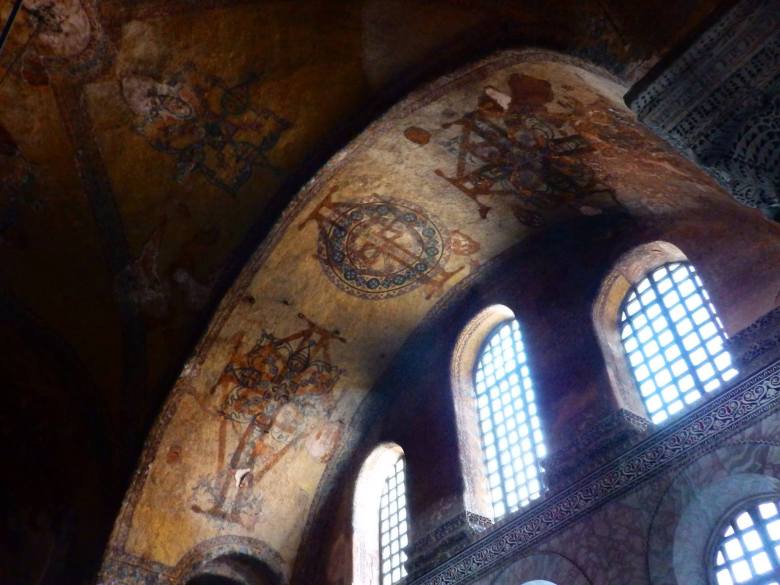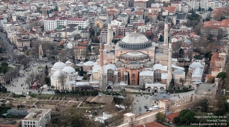Konstantinopolin (eli nykyisen Istanbulin) Hagia Sofia valmistui vuosien 532–537 välillä, ja se oli osa keisari Justinianus I:n suurta rakennushanketta. Mahtipontisen ”pyhää viisautta” tarkoittavan rakennuksen arkkitehtonisena esikuvana oli todennäköisesti Rooman Pantheon ja massiivisuudesta kertoo se, että kirkko oli maailman suurin kupolikattoinen rakennus noin 800 vuoden ajan (Mark et al 1970). Valmistumisensa jälkeen Hagia Sofiasta tuli Bysantin keisarien kruunajaispaikka ja koko itäisen kristikunnan pääkirkko. Seuraavien vuosisatojen aikana kirkkoa kunnostettiin ja korjattiin useasti maanjäristysten aiheuttamien tuhojen vuoksi, ja sinne valmistettiin pyhimyksiä ja enkeleitä kuvaavia freskoja ja mosaiikkitöitä. Hagia Sofia onkin poikkeuksellisen hyvin säilynyt monumentti, jolla on taide- ja kulttuurihistoriallisesti merkittävä arvo. Siksi se on listattu UNESCO:n maailmanperintölistalle yhdessä Istanbulin muiden historiallisten kohteiden kanssa. (Dark & Kostenec 2019; Honour & Fleming 2005; Gregory 2010; Wenzel 2010.)
