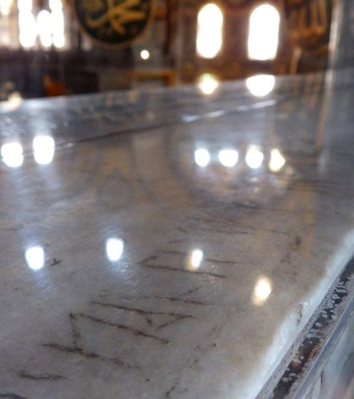 Aikojen saatossa Hagia Sofiassa ovat kohdanneet eri väestöt ja kulttuurit, myös pohjoismaalaiset. Bysantin keisari Basileios II pestasi 900-luvun lopulla henkivartiokaartiinsa Novgorodin ruseja sekä skandinaavisia sotureita. Näiden varjagikaartilaisten jälkinä on pidetty kahta Hagia Sofiasta löytynyttä riimukirjoitusta. Toisessa on vielä 1960-luvulla lukenut nimi ”Halfdan” (nykyisin jäljellä on enää loppuosa –ftan) (Svärdström 1970), ja toisessa lukee mahdollisesti ”Ári teki” (nämä riimut) (Larsson 1989).