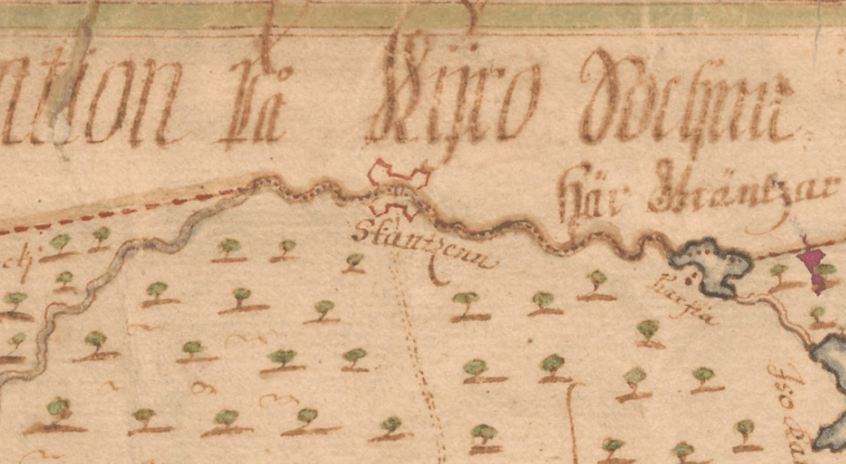 Skanssin lähin osoite on Kauraharjuntie 47, mistä löytyykin lyhyt metsätien pätkä auton väliaikaista parkkeerausta varten. Loput matkasta skanssille (ETRS-TM35FIN: P: 6890457, I: 264910) tulee kulkea jalan joki- ja niittymaisemasta nauttien.