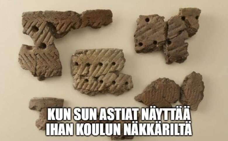 Kuten edellä on (toivottavasti) käynyt ilmi, kivikautinen keramiikka on kaikkea muuta kuin kamalaa ja tylsää. Kun ope seuraavan kerran puhuu keramiikasta tai kivikirveistä (niistä enemmän seuraavalla kerralla…), ei siis kannata ummistaa silmiä, vaan miettiä, mitä kaikkea ensisilmäyksellä mitättömän näköisiin saviastianpalasiin onkaan tallettunut.