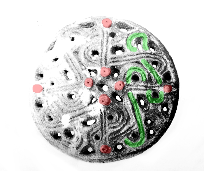 Äänekoskelta löytynyt F-tyypin kupurasolki (KM 11929), jonka tunnistaa tappien määrästä. Kuva: Museovirasto/Finna.fi.