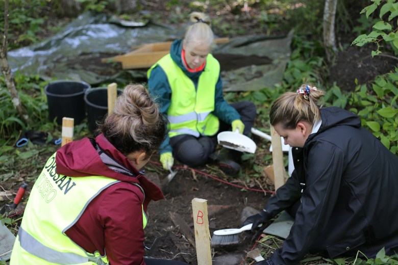 Kenttäkauden kaksi ainoaa kunnon sadepäivää osuivat juuri lukiolaisten kenttäpäiville. Vaikka tämä oli sinänsä sääli, emme voineet olla huomauttamatta, että he saivat myös sateiden ansiosta varsin autenttisen kenttätyökokemuksen. Säästä huolimatta kaivaminen oli reipasta, tunnelma oli positiivinen, ja puistossa kuului nauru. Harmillisempaa oli, että myös yleisö- ja mediapäivä osui sadepäivälle. Pieni määrä kiinnostuneita uskalsi uhmata sääolosuhteita, ja pistäytyi paikalle juttelemaan paikallishistoriasta. Ulkotapahtumat sopivat sadepäiville kuin käsi kenkään. Onneksi Wiksbergin ympäristössä pyöri paikallisia myös muina päivinä, ja saimme heidän kanssaan käytyjen keskustelun kautta kerättyä talteen arvokasta paikallistietoutta.