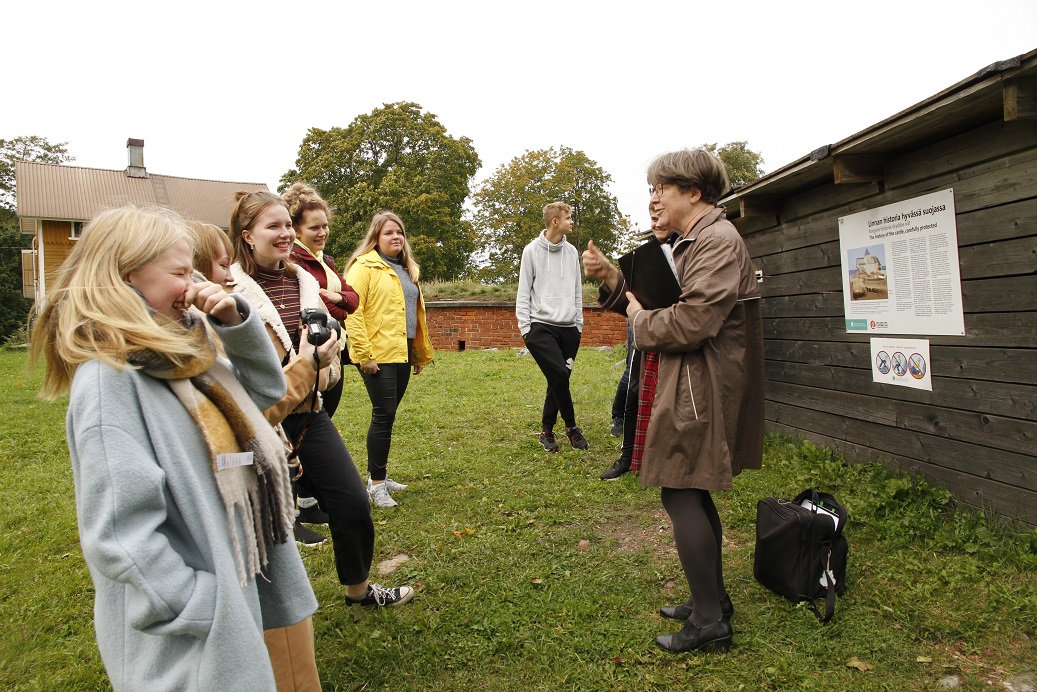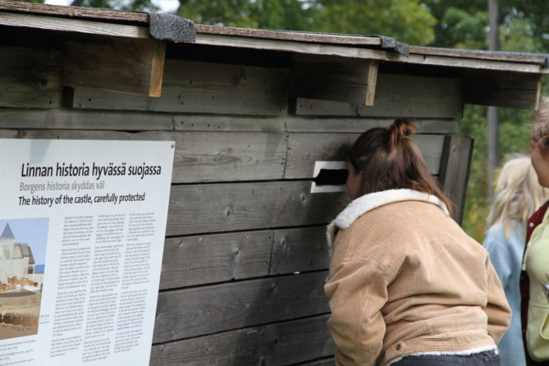 Kenttätöiden ohella yksi hankkeen huippuhetkistä oli osana Mullankaivajat-arkeologiakurssia järjestetty retkipäivä Kuusiston Piispanlinnalle, jossa Kaarinan oppaat ry:n Lea Heinonen-Eerola otti ryhmämme vastaan aurinkoisella asenteella syksyn harmaudesta huolimatta. Lean keskustelevalla opastuksella tutustuimme Kuusiston alueen sekä tietenkin itse Piispanlinnan tarinaan sekä paikalla tehtyihin arkeologisiin tutkimuksiin ja kunnostustöihin.