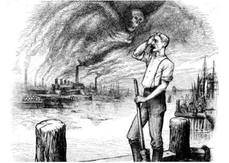 Oli taustalla sitten jumalallinen rangaistus tai ruumiinnesteiden epätasapaino, saastuneen ilman on katsottu aina antiikin ajoilta 1800-luvulle asti olleen pääasiallinen syy tartuntatautien luonnolliseen syntyyn. Keskiajalla saastunutta tai likaista ilmaa alettiin Euroopassa kutsua ”miasmaksi”, italian kielellä ”malariaksi” eli ”huonoksi ilmaksi” (Vuorinen 2006, 51). Kuten humoraalioppikin, myös miasma-teoria on peräisin antiikin Kreikasta; Hippokrates yhdisti ”pahan ilman” tartuntatauteihin jo 400- ja 300-luvuilla eaa (Kannadan 2018, 41).