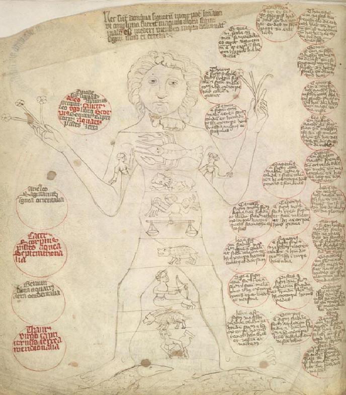Kuten humoraalioppikin, myös astrologia on ollut tärkeä elementti eurooppalaisen lääketieteen kokonaisuudessa. Tarttumattomiakin tauteja on pyritty selittämään astrologisilla tekijöillä, kuten erilaisten taivaankappaleiden liikkeillä ja asennoilla. Myöhäiskeskiajalta lähtien tähtitaivas on kuitenkin vahvasti liitetty nimenomaan tartuntatauteihin, erityisesti epidemioiden syntyyn johtavana tekijänä. Pariisin yliopistossa vuonna 1348 laaditussa selvityksessä Euroopassa riehuvasta mustasta surmasta päädyttiin siihen lopputulokseen, että 20. maaliskuuta 1345, tarkasti ottaen kello 13 aikaan, Jupiterin, Marsin ja Saturnuksen kiertoradat olivat kohdanneet Vesimiehen tähtikuviossa, minkä seurauksena ruttoepidemia oli saanut alkunsa. Selitys tämän kohtaamisen katastrofaalisuudelle oli yksinkertainen: Marsissa palavat tulet sytyttivät Jupiterista purkautuvat höyryt, jotka Maahan asti levittyään viilentyivät kylmän Saturnuksen vaikutuksesta maanpinnan tasalla leijuvaksi sumuksi. Ilmeisesti tapahtumien kulku juuri Vesimiehen kuviossa teki mustasta surmasta erityisen tuhoisan (Huldén et al 2017, 147).