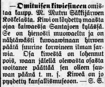 Tarina ei kerro, minkälaisia keskusteluja Mutrun kanssa käytiin, mutta lopputulos oli, että esine lunastettiin kauppiaalta 6 markan hinnasta. Nykyrahaksi muutettuna Mutrulle maksettiin 26,41 €. Summa ei vaikuta kovin kummoiselta, mutta kun vertaamme sitä työmiehen keskituntipalkkaan, joka oli tuolloin vain 38 penniä, vastasi summa sentään työmiehen kahden päivän ansiota.