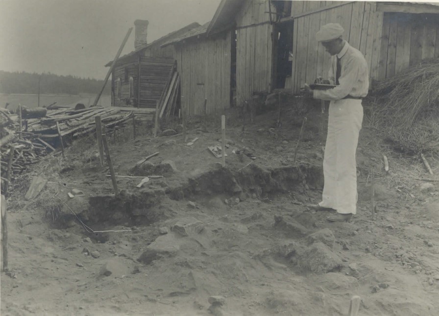 Aarne Michaël Tallgren (1885–1945) johti ensimmäiset omat kaivauksensa ja muutkin kenttätyönsä kesällä 1906. Kaivaukset olivat Harjavallassa, Köyliössä ja Uskelassa.[i] Viimeisen kerran hän kaivoi kesällä 1932 kotipitäjässään Maariassa. Vuosien 1906–1919 kotimaiset kenttätyöt olivat Muinaistieteellisen toimikunnan virkatöitä, eikä Tallgren voinut mainittavasti vaikuttaa kohteiden valintaan. Suurempi vapaus hänellä oli professorina Tartossa 1920–1923 ja Helsingissä 1923 jälkeen, ja täysin hänen omista tutkimuksellisista lähtökohdistaan nousivat kaivaukset, jotka hän toteutti Venäjällä 1909 ja 1915.
