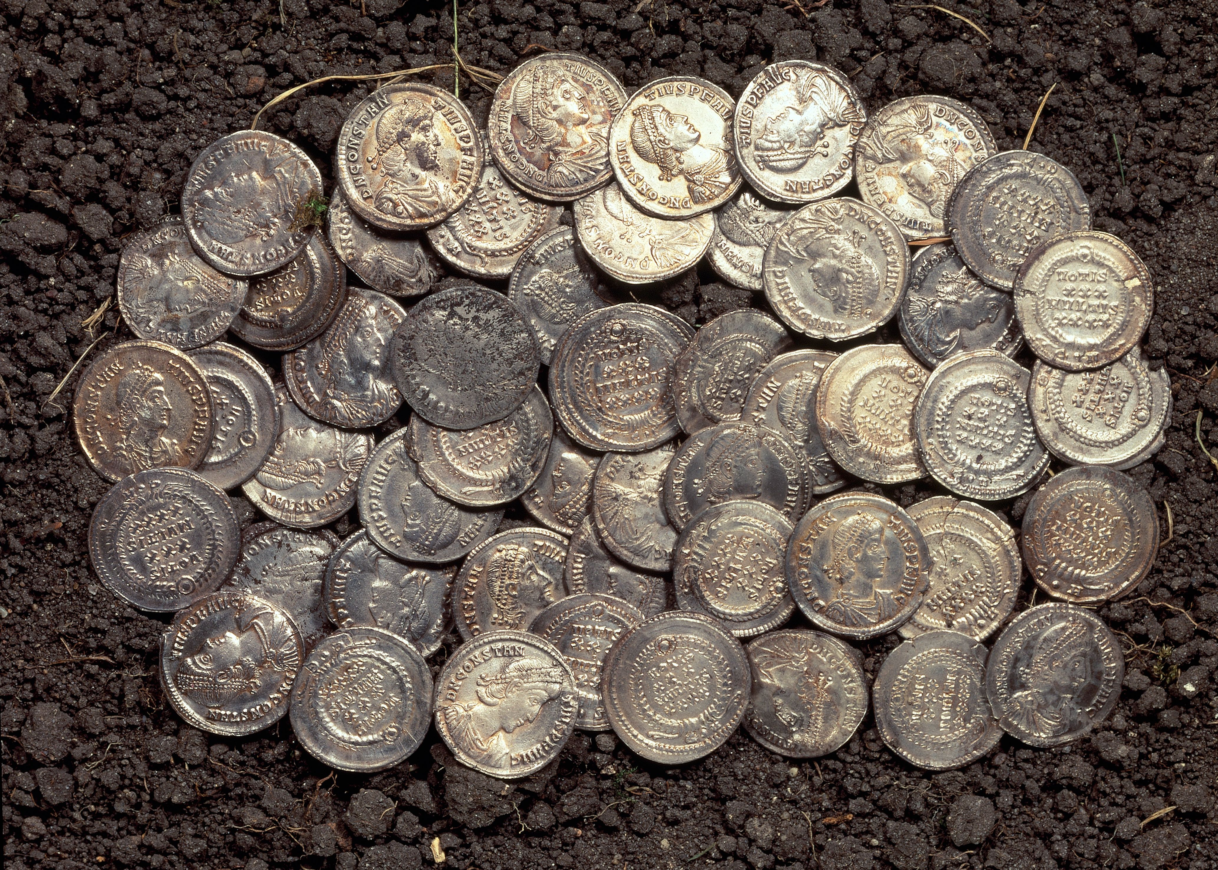 [1] Roomalaisista hopearahoista valtaosa on denaareita, mutta myös 300-luvulle ajoittuvia hopearahoja siluquoita on löydetty huomattava määrä. Sen sijaan 200-luvulle ajoittuvat kaksoisdenaarit eli antoninianukset ovat hyvin epätavallisia löytöjä (Horsnaes 2010b:37). Antoninianusten vähäisyys on selitettävissä niiden alhaisella hopeapitoisuudella, sillä 200-luvun lopulle tultaessa rahat olivat käytännössä kevyesti hopeoituja kuparirahoja. Denaareiden ja siliquoiden hopeapitoisuus sen sijaan pysyi suhteellisen korkeana, vaikka niidenkin osalta hopeapitoisuudessa tapahtui merkittävää alenemista Neron hallintokaudelta alkaen.