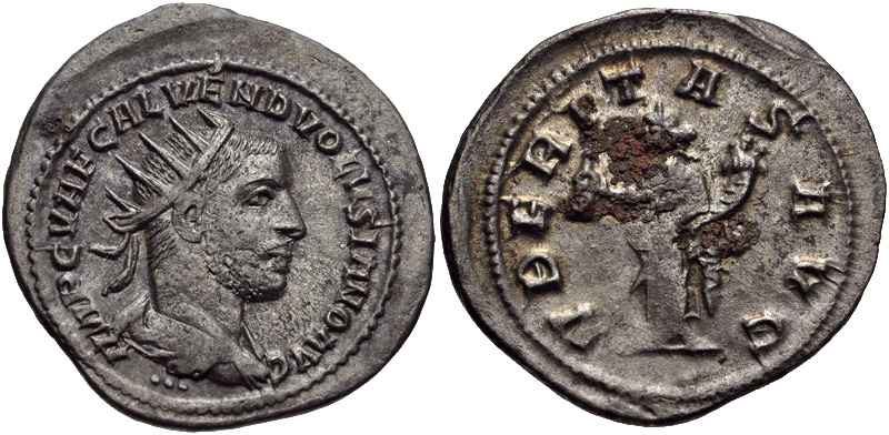 Hetken aikaa kuitenkin uskottiin toisin. Ranskalaisnumismaatikko Jean Foy Vaillant (1632–1706) esitti teoksessaan Numismata imperatorum romanorum (1674) Rooman keisari Volusianuksen (hall. 251–253) sotaretkien yltäneen Suomeen saakka. Väitteensä Vaillant perusti Volusianuksen kaksoisdenaarin eli antoninianuksen kehätekstiin. Sen Vaillant luki muodossa ”IMP C VA F GAL VEND VOLVSIANO AVG”, jonka hän uskoi olevan lyhenne tittelistä Imperator Caesar Vandalico Finnico Galendico Vendenico Volusiano Augustus. Myöhemmin väite sai tuulta alleen myös Suomessa kansallisen heräämisen aikaan 1800-luvulla. Tosiasiallisesti Vaillantin luenta oli kumottu virheellisenä jo kuitenkin modernien numismatiikan isänä pidetty Joseph Eckhelin (1737–1798) toimesta rytmittämällä kehätekstin lyhenteet hieman eri tavalla: IMP C V AF GAL VEND VOLVSIANO AVG, Imperator Caesar Gaius Vibius Afinius Gallus Veldumnianus Volusianus Augustus. (Talvio 2008)