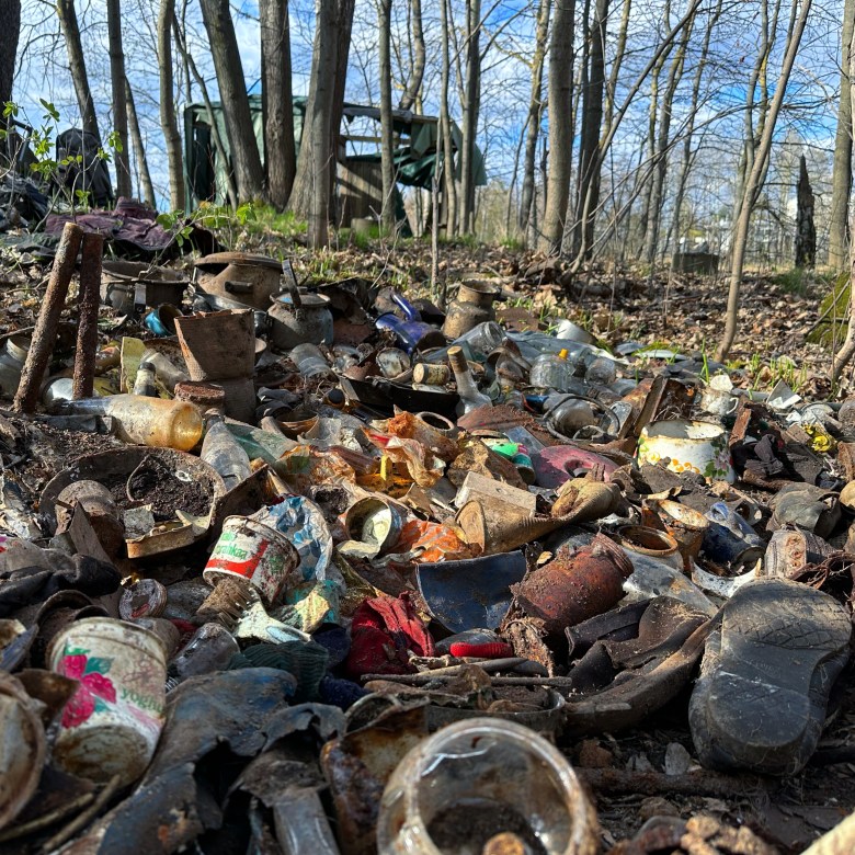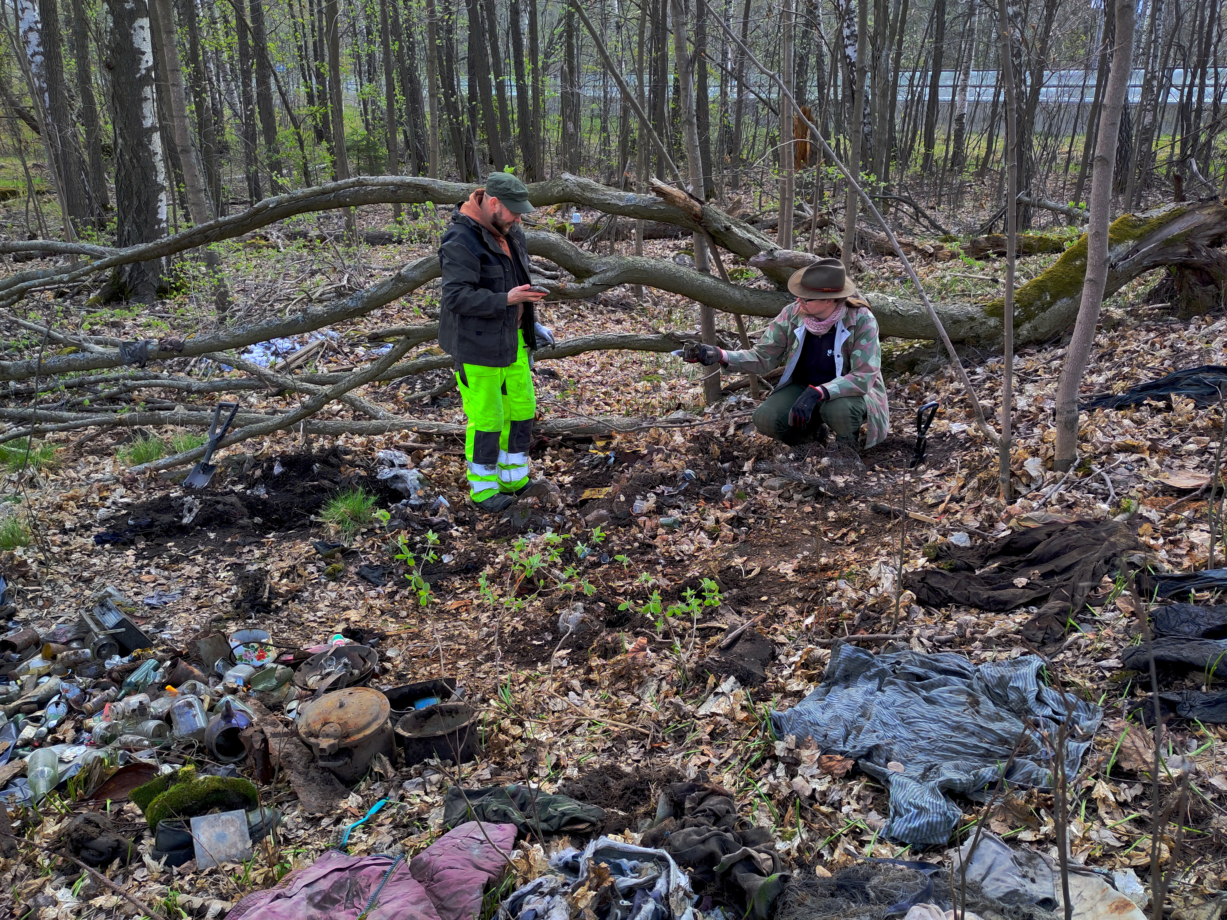 Päällimmäinen jätekerros sisälsi myös paljon ulkovaatteita, paitoja ja lakanoita. Ne voivat olla peräisin hyväntekeväisyyslahjoituksista tai ne voivat heijastaa paikallisia tarinoita näpistyksistä kerrostalopihojen pyykkinaruilta. Joka tapauksessa vaatteet oli hylätty yhdessä paikan kanssa, kuin rajanvetona entiseen.