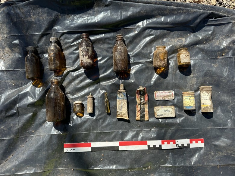 Löytyneitä lääkepakkauksia. Kuva: Oula Seitsonen.