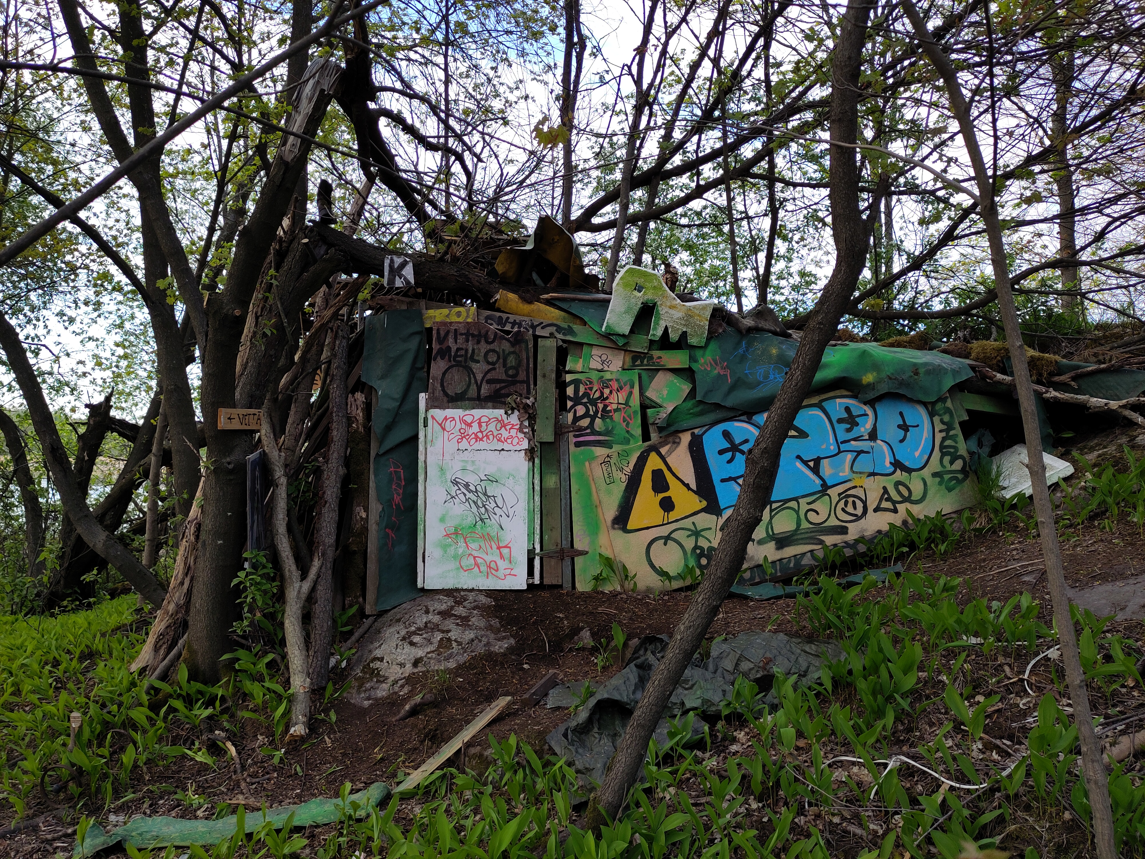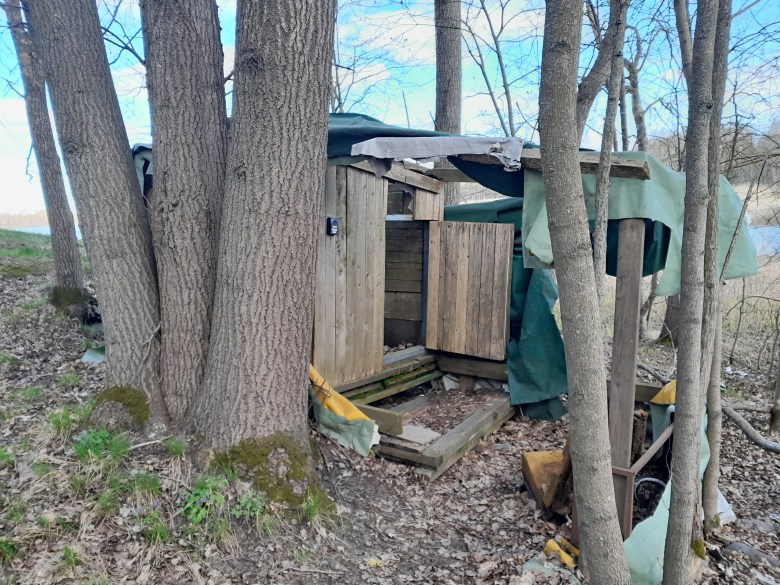 Vuosi kaivausten jälkeen, keväällä 2025, Aki kävi uudelleen katsomassa paikkaa. Kohteella odotti yllätys: vaja oli purettu. Aluksi oletus oli, että kaupunki oli saanut somen kautta vihiä ja käynyt poistamassa tämän ”häpeäpilkun.” Kunnes mäen takaa, suojassa katseilta, löytyi – yli kahdenkymmenen vuoden jälkeen ja uuden kodittomuuden kasvun aikana – uusi maja.