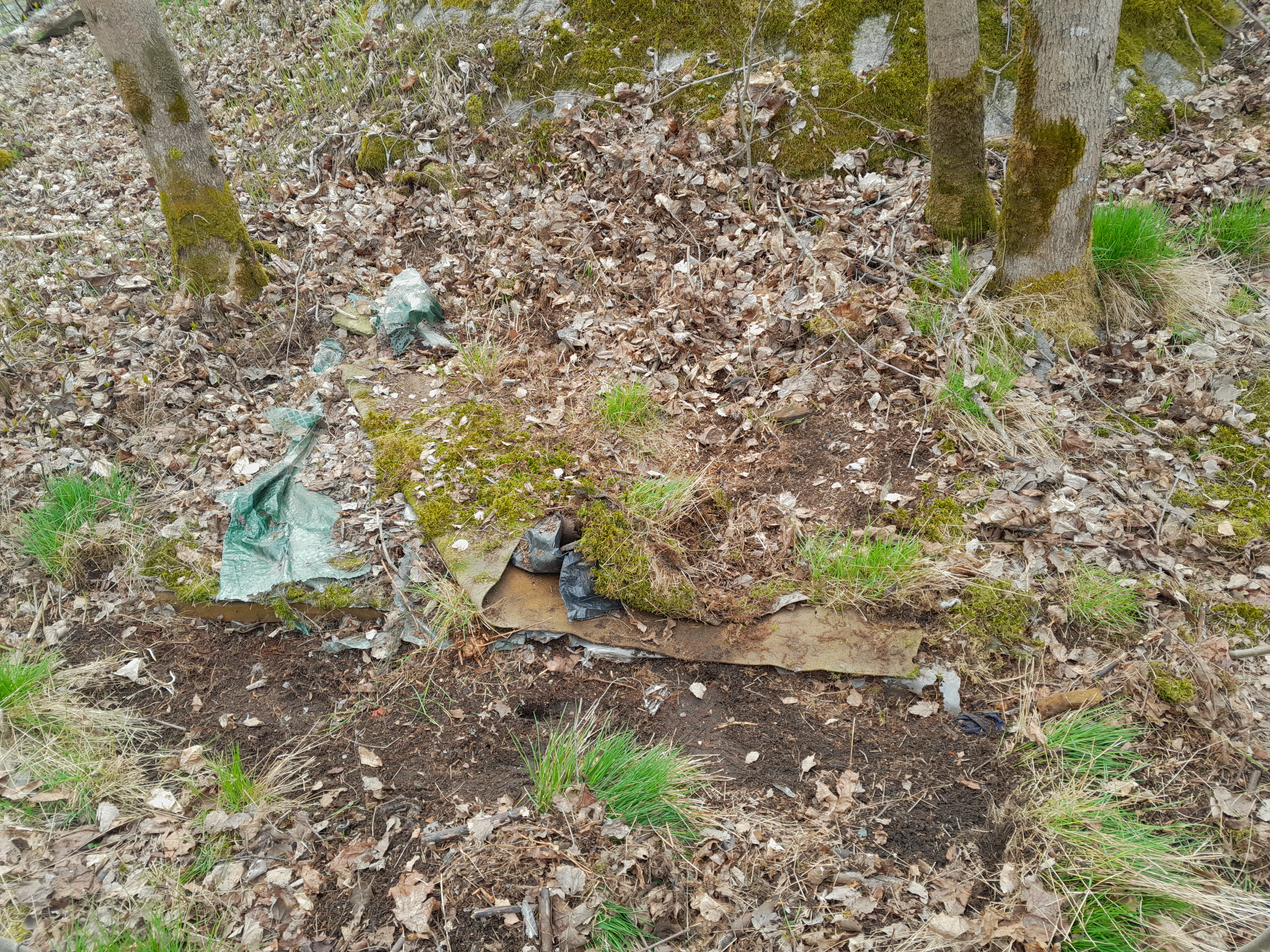 Maastossa tarkasteltuna tuvan sijainnin näki ainoastaan nurkkakivistä. Tuvan sisällä kaivettaessa edeltävän syksyn lehtien alta paljastui hiiltä – tupa on siis palanut jossain vaiheessa. Kalastajatuvan aikaan liittyy todennäköisesti myös selkeä, mahdollisesti useaan kertaan käytetty, kokonpolttopaikka sammalkasvuisella kalliolla. Näiden lisäksi paikalta hahmottui paljon muutakin. Sammalten alta pilkisti patja, jonka edessä oli kynnysmatto – tämä oli ilmeisesti telttapaikka. Löytyi ainakin kaksi muuta patjaa, eli nekin mahdollisia telttapaikkoja. Mäen alla sijaitsi laaja roskakuoppa tai pikemminkin kaatopaikka. Viimeisenä polun päädyssä oli paikka, jota päätimme kutsua rikospaikaksi – siitä kuitenkin lisää myöhemmin.