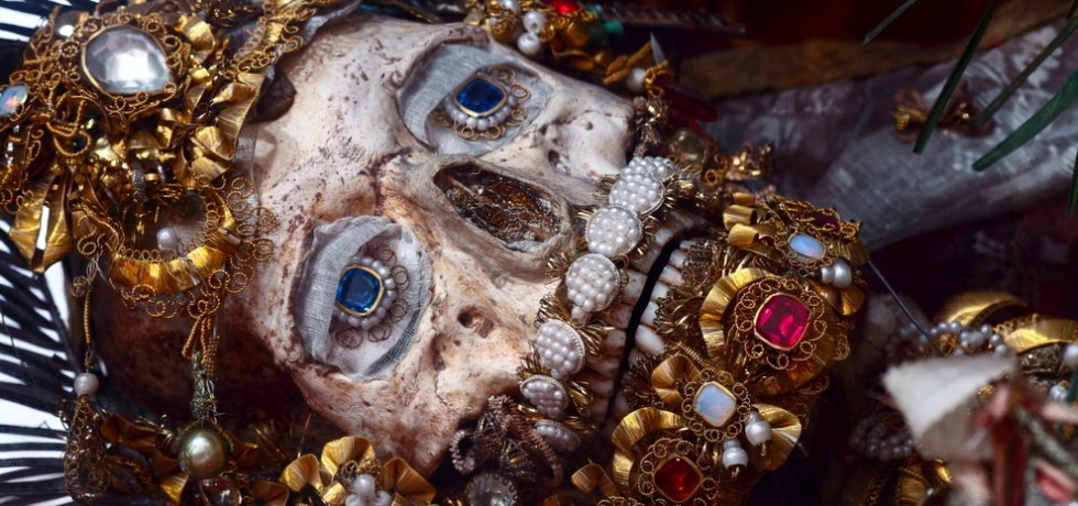 Historiallinen aika Keski- ja Etelä-Eurooppa Keskiaika Nordfors Ulla Osteologia Paleopatologia SekundaarihautausKatolisen Euroopan ossuaariot ja jalokiviin puetut luurangot